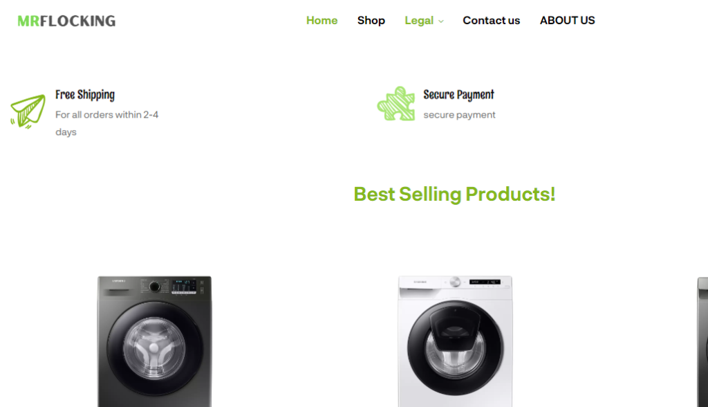 Mrflocking.com is an online shop dealing on a single item – Samsung Washing Machine.
