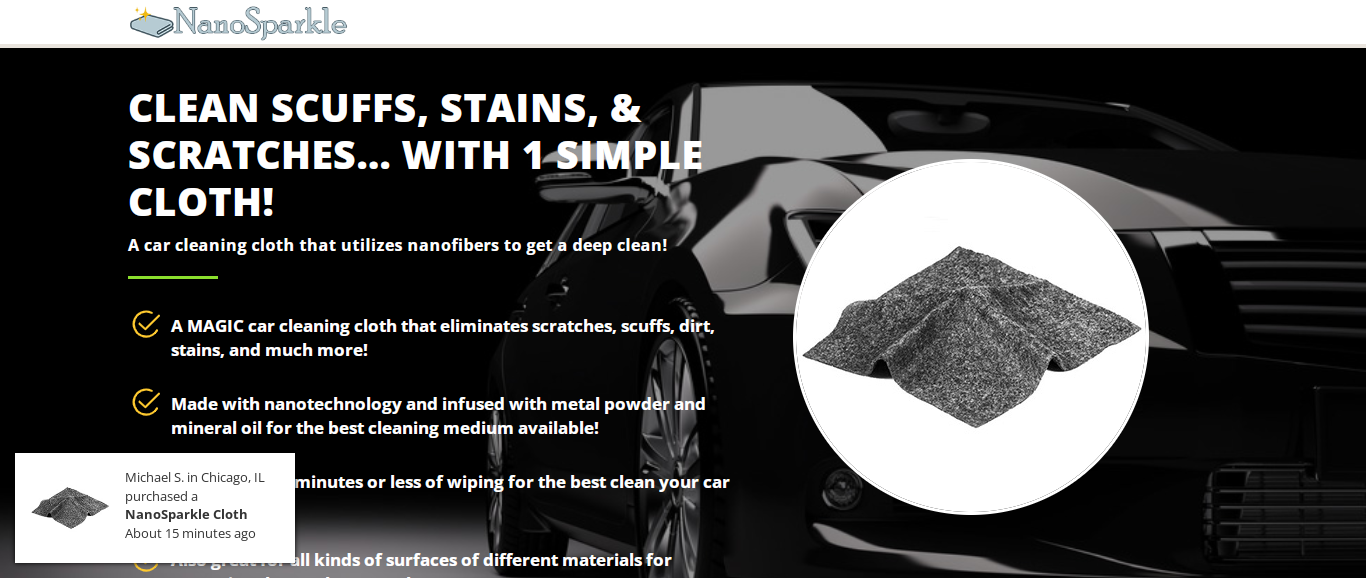 Mynanosparkle located at Mynanosparkle.com is an online store that is selling a car cleaning cloth that utilizes nanofibers etc. And these products are sold at a suspicious discount rate.