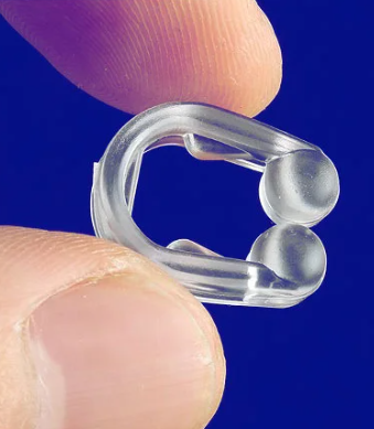 What the Nanosnore nose clip does is to widen the nostrils to reduce respiratory resistance in the nose; in other words, air can flow better into the lungs through the nose. Once the body registers that nasal breathing is working without restriction again, it unconsciously switches to (much healthier) nasal breathing.