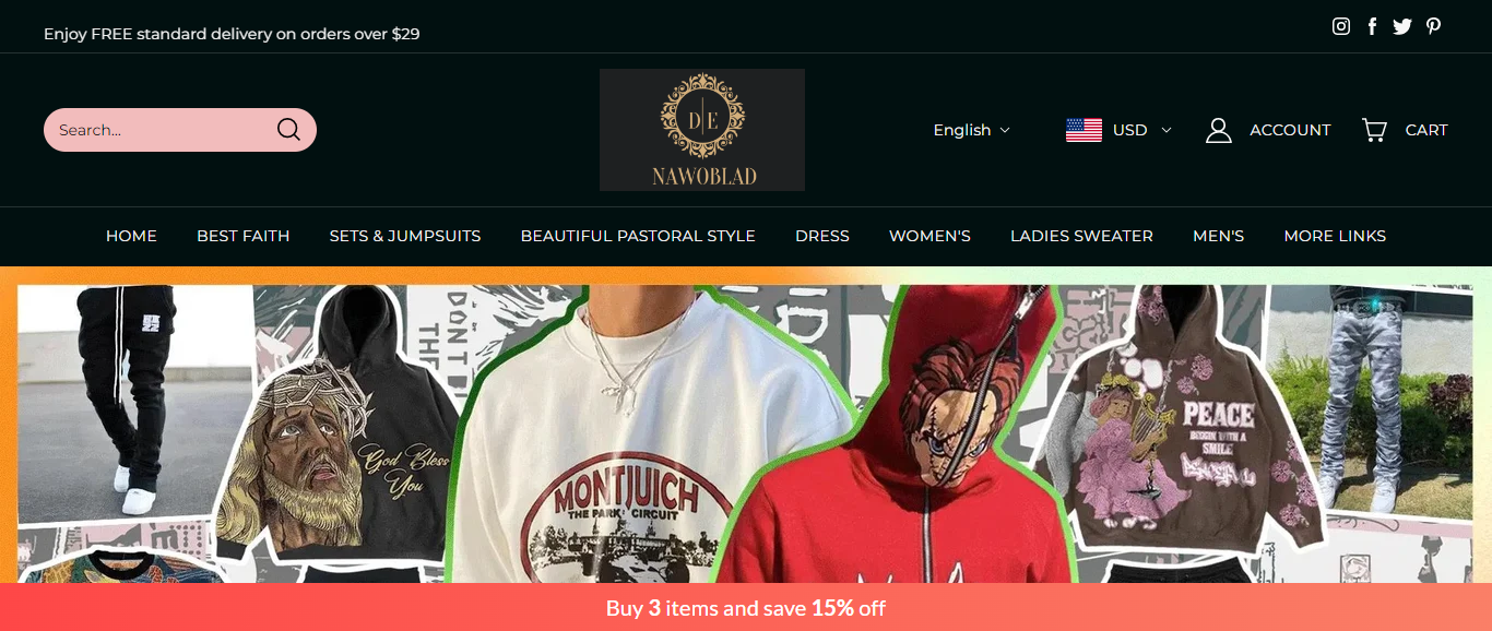 Nawoblad located at Nawoblad.com is an online store that is selling various types of products such as dress, jumpsuit, hoodies, etc. And these products are sold at a suspicious discount rate.