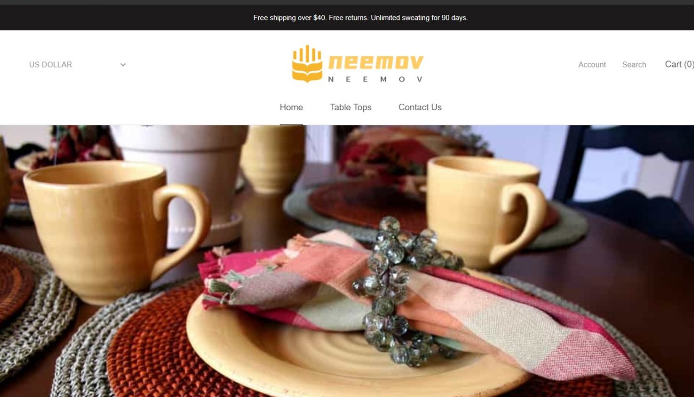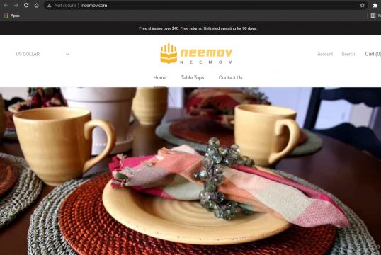 Neemov.com is an online store that claims to be selling napkin sets, table placement sets and a couple other dining materials. The website is not structured very well and it misses some elements of a professional online store. It is less than a month old and as such, has a low trust score (You can check this using WHOIS Domain Age Checker). In addition to all this, the website uses a http instead of https protocol, which is unsecure and shouldn’t be used by online stores. Any credit card information you use here is bound to be stolen.