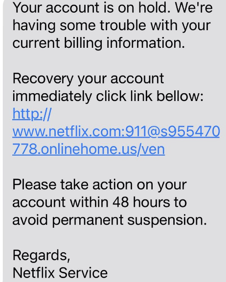 In late 2020, many users received texts and emails containing a “Netflix one year free offer,” another phishing attempt