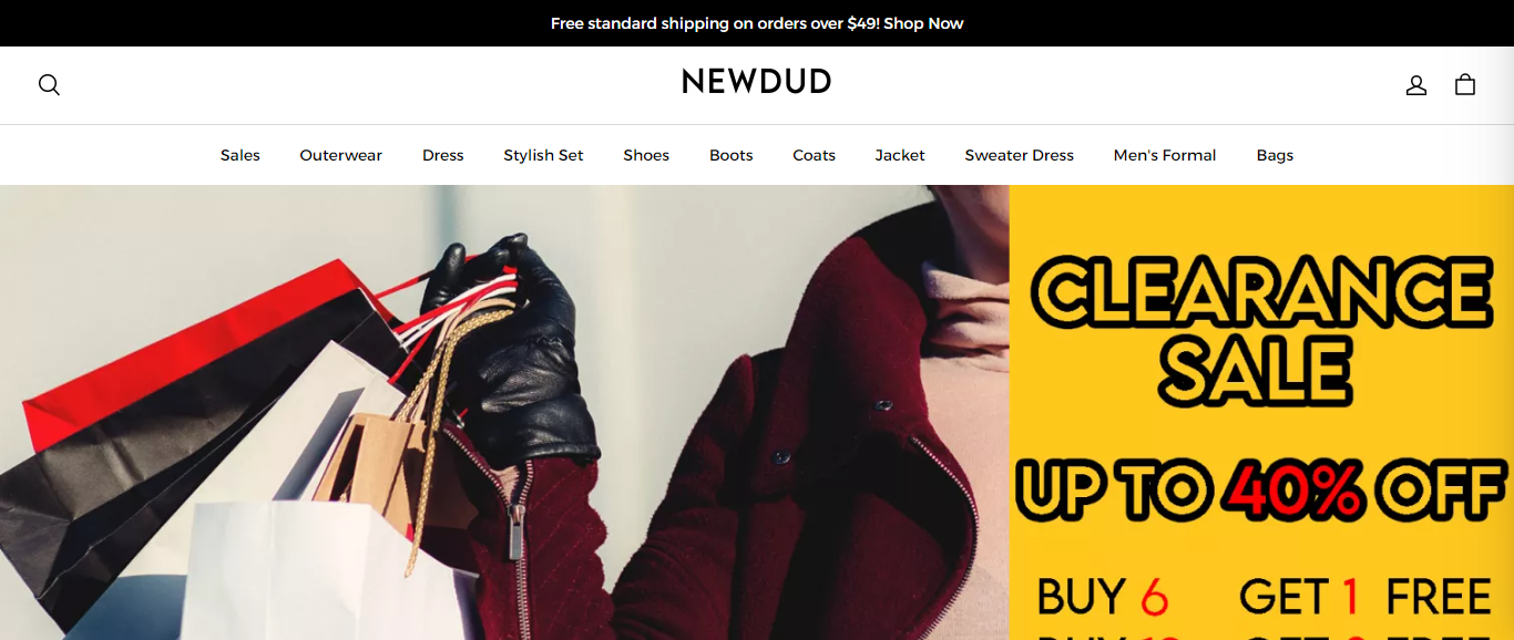 Newdud located at Newdud.com is an online store that is selling various fashion and clothing such as gowns, two piece, casual shirt, casual pants, sweater, jackets, coats, pants, etc And these products are sold at a suspicious discount rate.