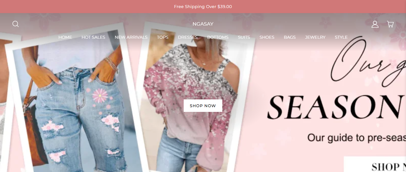 Ngasay located at Ngasay.com is an online store that is selling various products such as tops, sweatshirts, shoes, etc. And these products are sold at a suspicious discount rate.