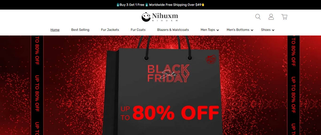 Nihuxm located at Nihuxm.com is an online store that is selling various types of products such as fur coats, jackets, blazers, waistcoat, tops, shoes. etc. And these products are sold at a suspicious discount rate.