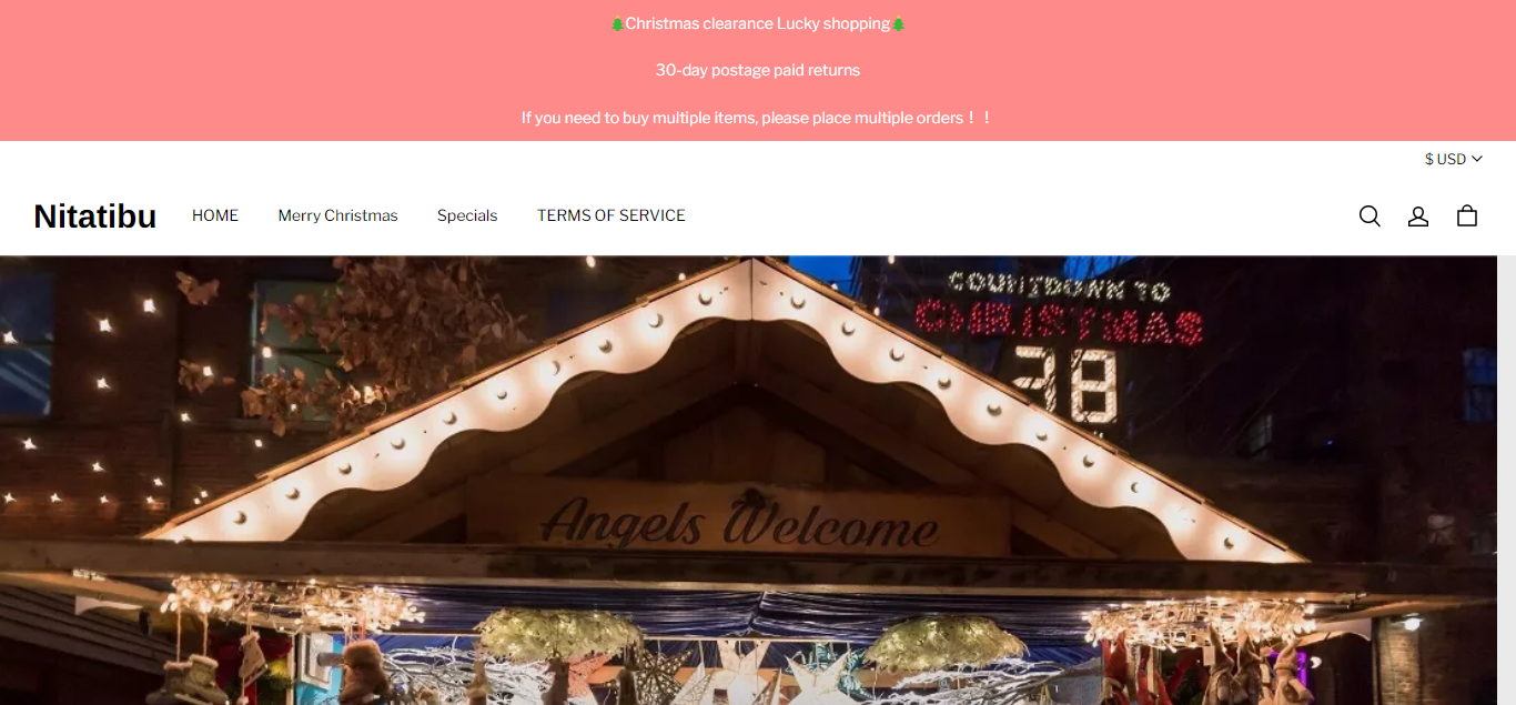 Nitatibu located at Nitatibu.online is an online store that is selling various Christmas decorations and toys such as Christmas wreath, Christmas tree, etc And these products are sold at a suspicious discount rate.