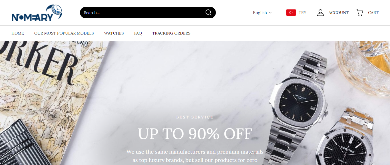Nomeary located at Nomeary.com is an online store that is selling various trendy designer wristwatches like Rolex, Omega, Patek philip, Audermars Piguet, Hublot, etc. And these products are being sold at suspicious discount prices.