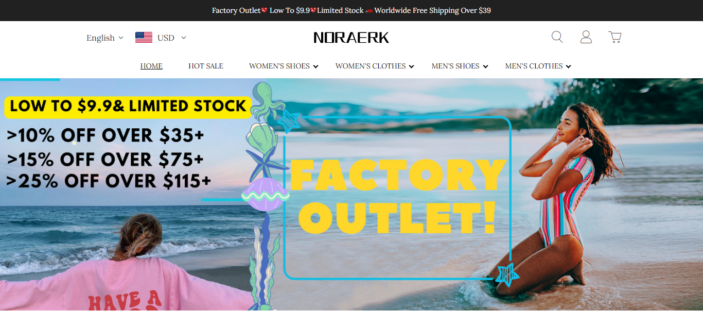 Noraerk located at Noraerk.com is an online store that is selling various fashion and clothing products such as Men’s shoes, Men’s Clothes, Women’s Shoes, Women’s clothes, etc. And these products are sold at a suspicious discount rate.