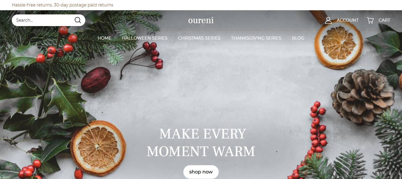 Oureni located at oureni.com is an online store that deals in various products like Christmas Wreaths, Tree Bows, Handmade Mini Christmas Tree, Gnome Doll For Christmas Decoration, Christmas Dog Friends Hanging Ornament, Christmas Parent-Child Clothing Series, Thanksgiving Series, Halloween Series, Christmas Ornaments And Gifts, etc. And these products are being sold at suspicious discount prices.