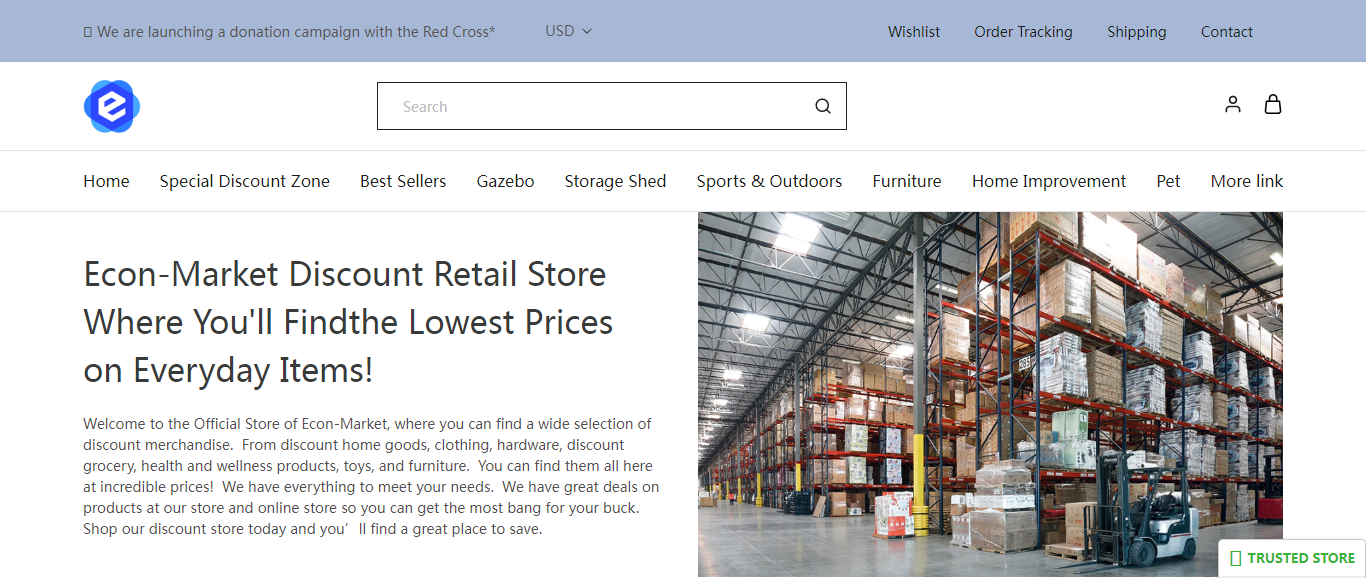 Overstock-mall located at Overstock-mall.shop also known as Econ Market claims to be selling various products such as gazebo, storage shed, furniture, etc. And these products are sold at a suspicious discount rate.