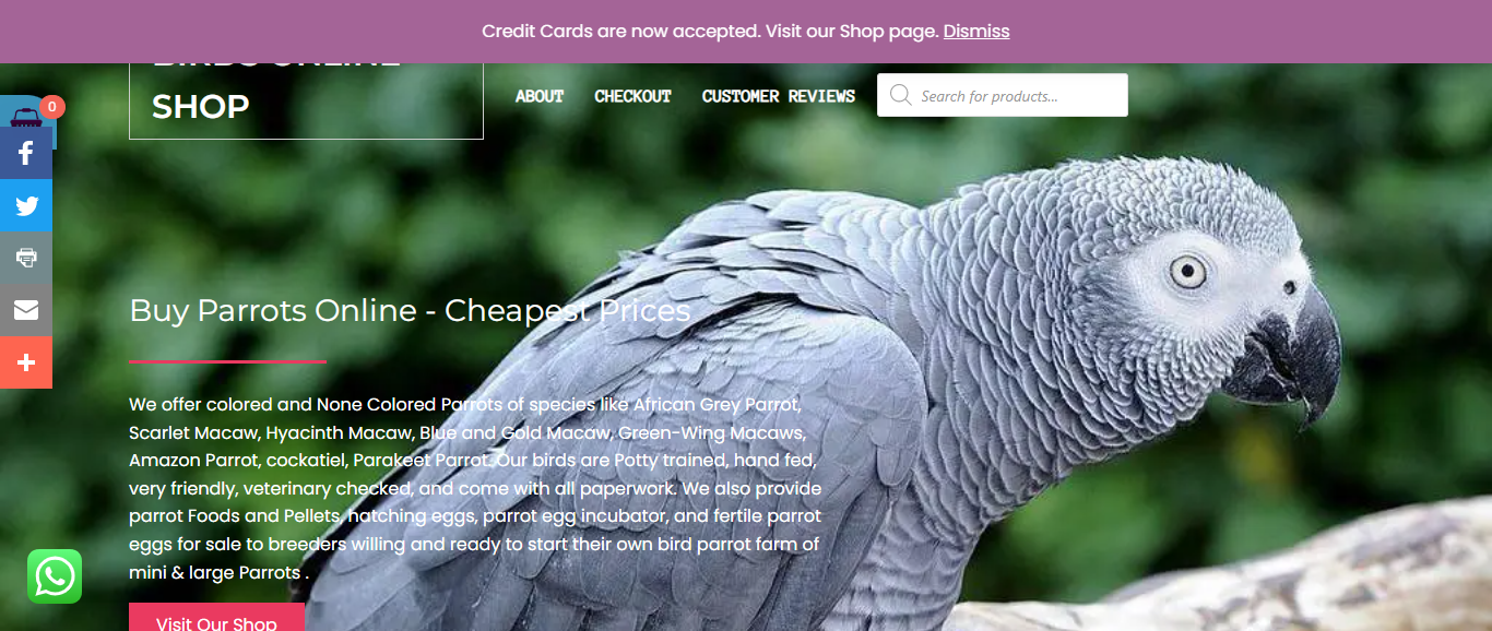 Parrotssaleonline has so many red flags and these are reasons why you should not bother shopping from the website. Some of the Red flags include: