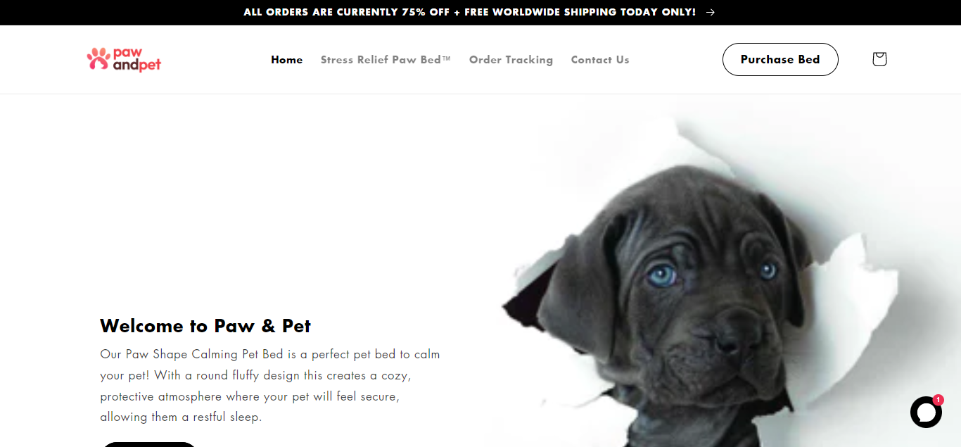 Pawandpet located at Pawandpet.co is an online store that is selling a Stress Relief Paw Bed. And these products are sold at a suspicious discount rate.