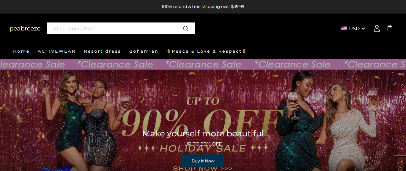 Peabreeze located at Peabreeze.com is an online store that is selling various products such as resort dress, bohemian dress, high waist leggings, etc. And these products are sold at a suspicious discount rate.