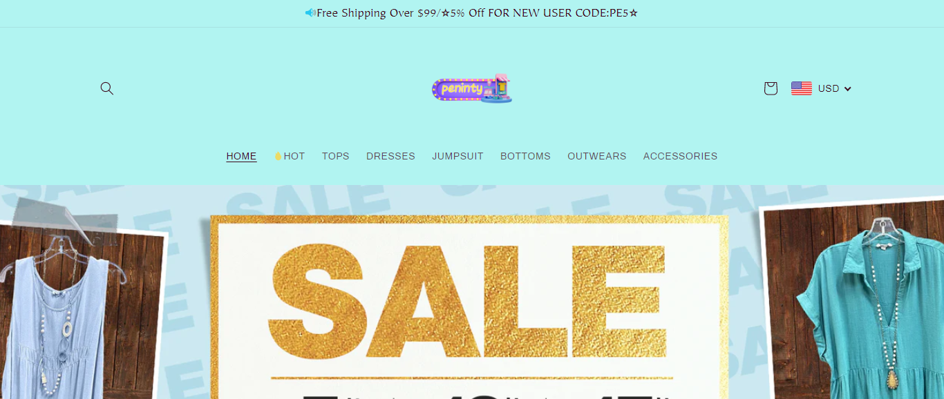 Peninty located at Peninty.com is an online store that is selling various types of products such as jumpsuit, tops, dresses, accessories, etc. And these products are sold at a suspicious discount rate.