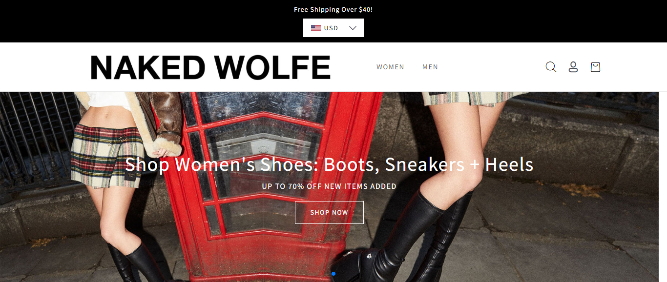 Pleasv located at Pleasv.Online is an online store that is impersonating the Naked Wolfe Brand. It claims to be selling various products such as shoes, boots, sneakers, etc. And these products are sold at a suspicious discount rate.