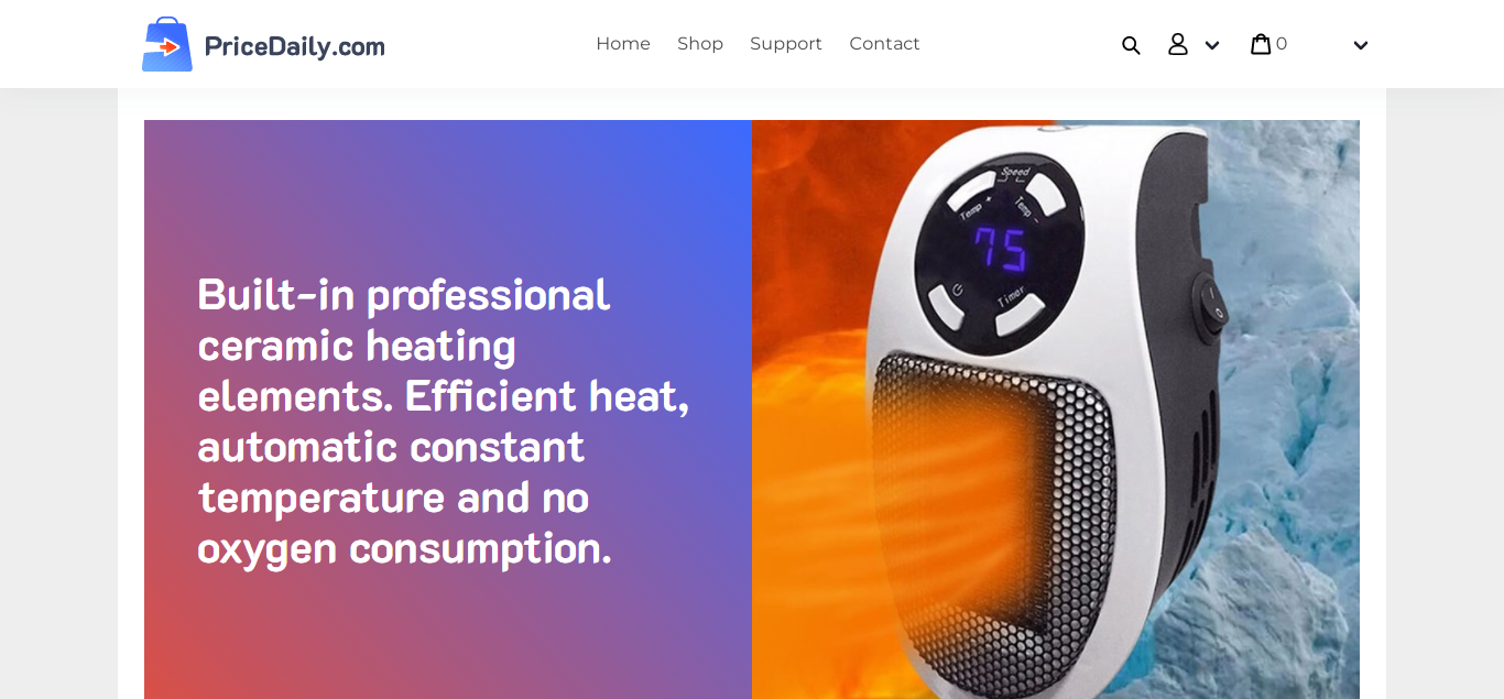 Portaheat is a portable electric heater. It claims to provide maximum power of 500W and it comes in smalll portable sizes.