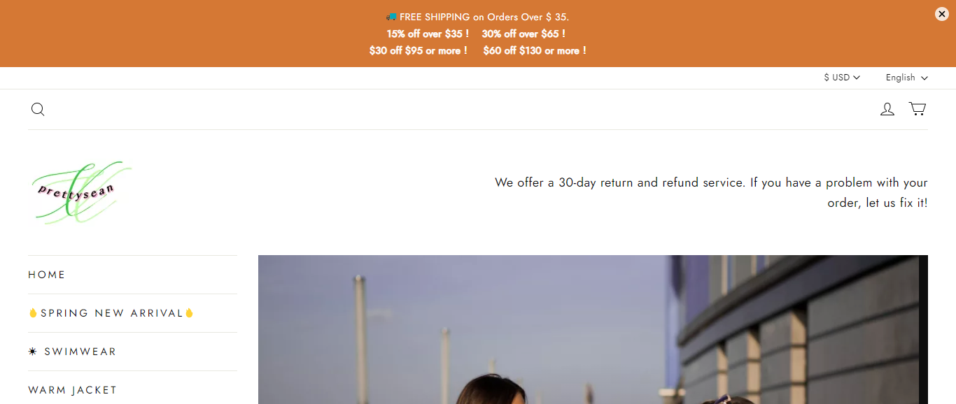 Prettysean located at Prettysean.com is an online store that is selling various products such as swimwear, warm jacket, two piece set, outdoor tactical equipment, sports equipment, etc. And these products are sold at a suspicious discount rate.