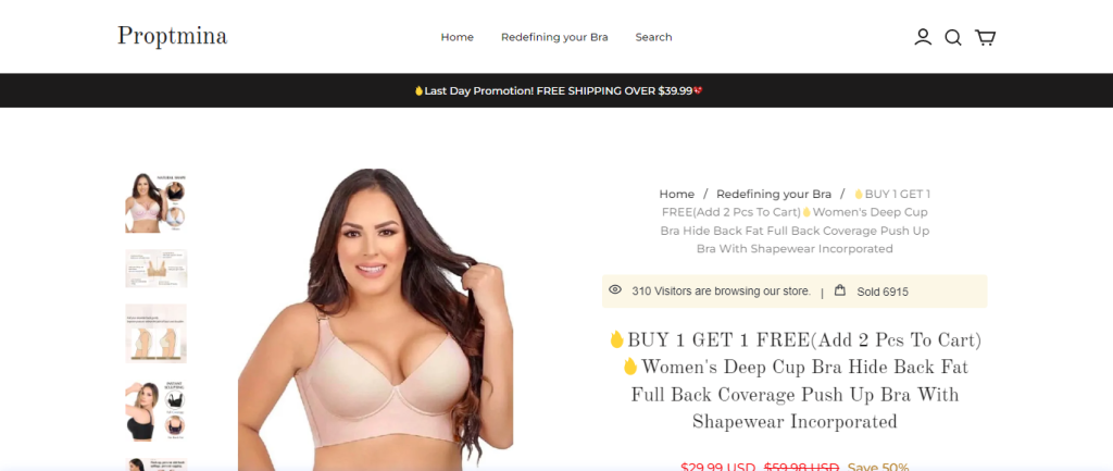 Proptmina Bra from Proptmina.com sells varieties of Bras, shapewears and underwear. It mostly cater for older women. The Proptmina Bra is made of breathable, soft material, which is designed to hold all the skin in its right place, it also claims that it is guaranteed to also reduce intense breast movement even during high-impact workouts. The under-bust shaper band also provides extensive support to the weight of the breasts and thus provides amazing comfort to your daily life activities.