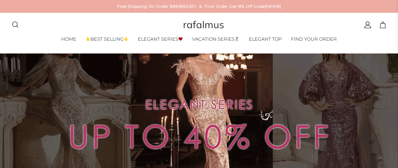 Rafalmus located at Rafalmus.com is an online store that is selling various fashion and clothing products such tops, jumpsuits, dresses, swimwear, etc. And these products are sold at a suspicious discount rate.