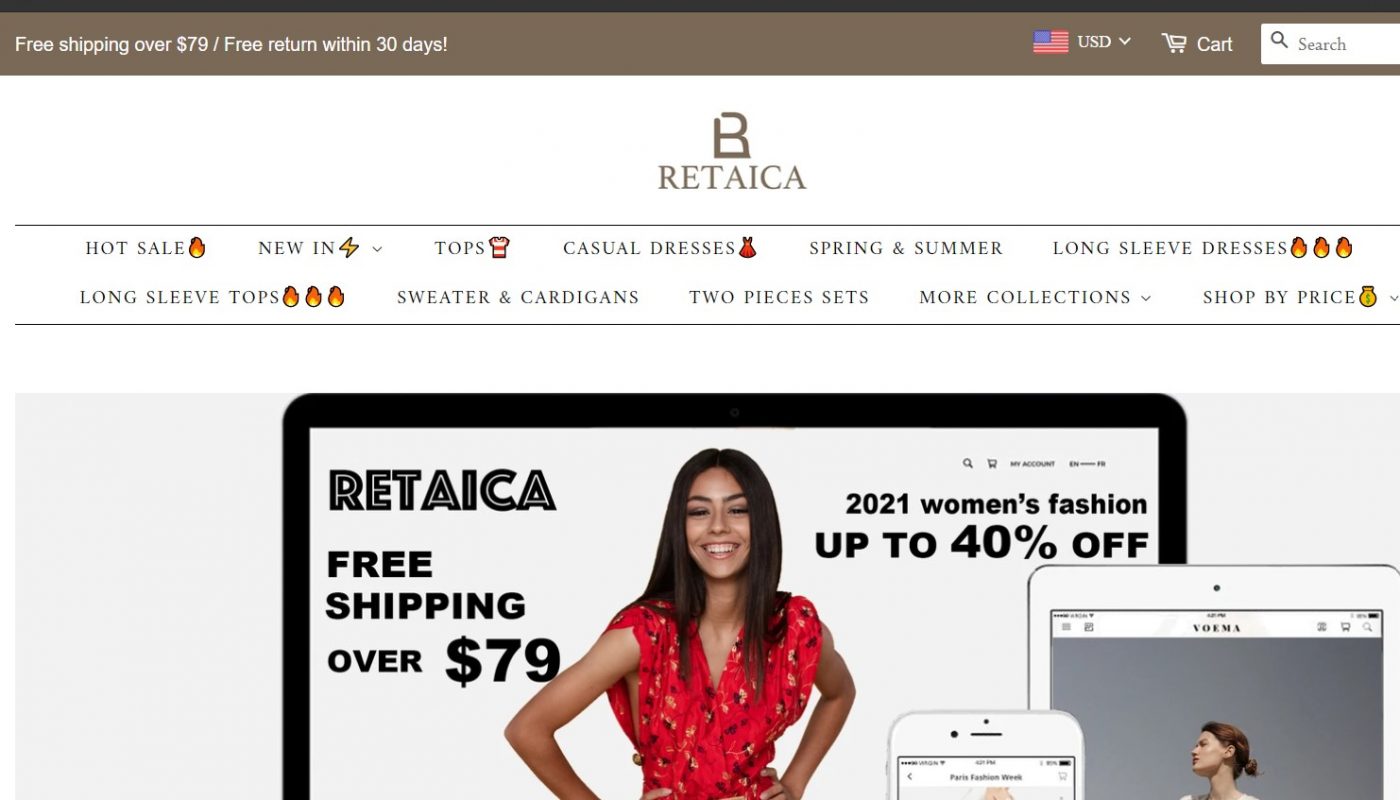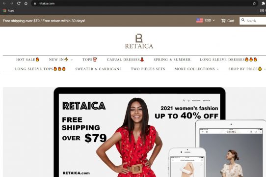 Retaica.com is an online store that claims to sell different women outfits; casual dresses, long sleeve tops, two-piece sets, etc. The website is not properly structured and it misses some key elements of a professional online store. This site is less than six months old (You can check their age on WHOIS Domain Age Checker), which gives it a decent trust score in that respect. Buying things from relatively new websites like that rarely ends well.