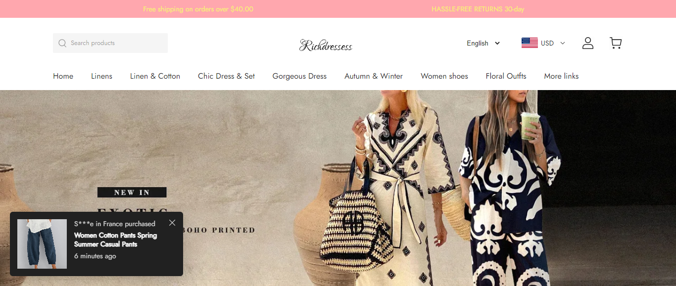 Richdressess located at Richdressess.com is an online store that is selling various clothing and fashion products such as dresses, two piece sets , etc.