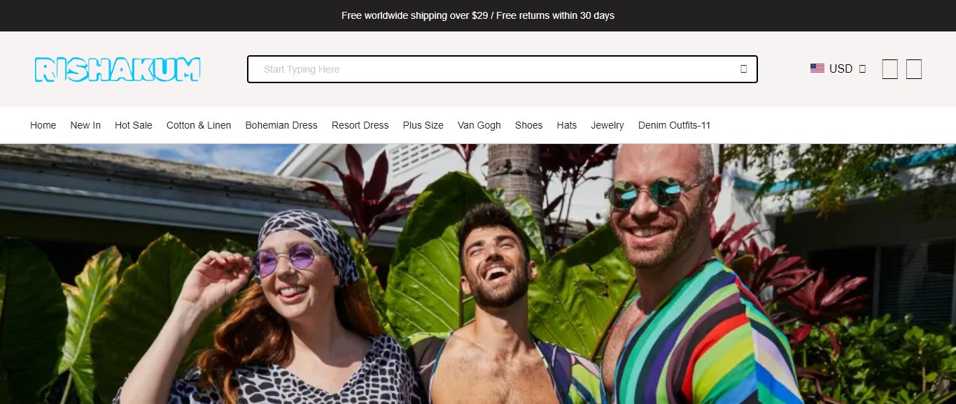 Rishakum located at Rishakum.com is an online store that is selling various products such as resort dress, bohemian dress, hats, jewelry, etc. And these products are sold at a suspicious discount rate.