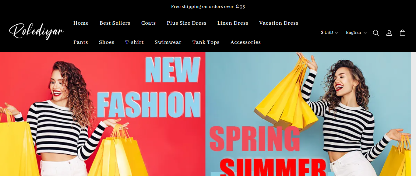 Rokediyar located at Rokediyar.com is an online store that is selling various fashion and clothing such as dresses, swimsuits, jumpsuits, bags, shoes, Tshirt, swim wear, etc. And these products are sold at a suspicious discount rate.