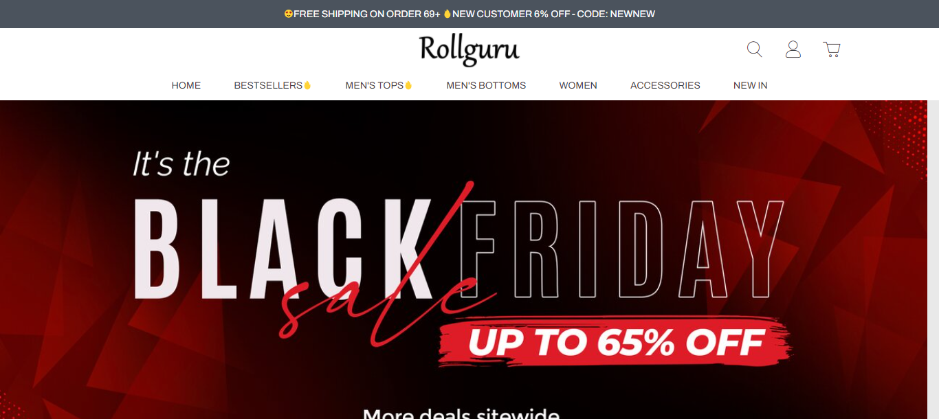 Rollguru located at rollguru.com is an online store that deals in various products such as men’s tops, bottoms, women’s track pants, pajamas, jackets, coats, jeans, t-shirts, sweatshirts, accessories, polo sweatshirts, etc. And these products are being sold at suspicious discount prices.