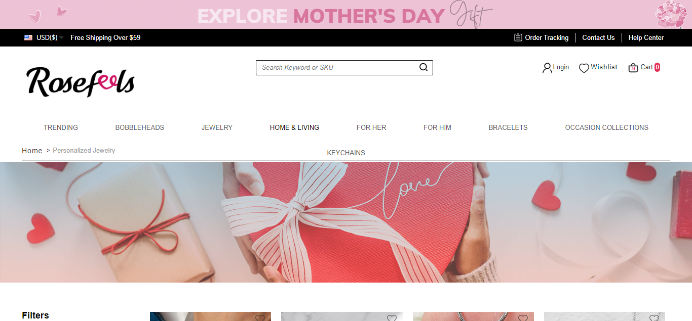 Rosefeels located at Rosefeels.com is an online store that is selling various types of jewelries such as rings, necklace, bracelets, etc And these products are sold at a suspicious discount rate.