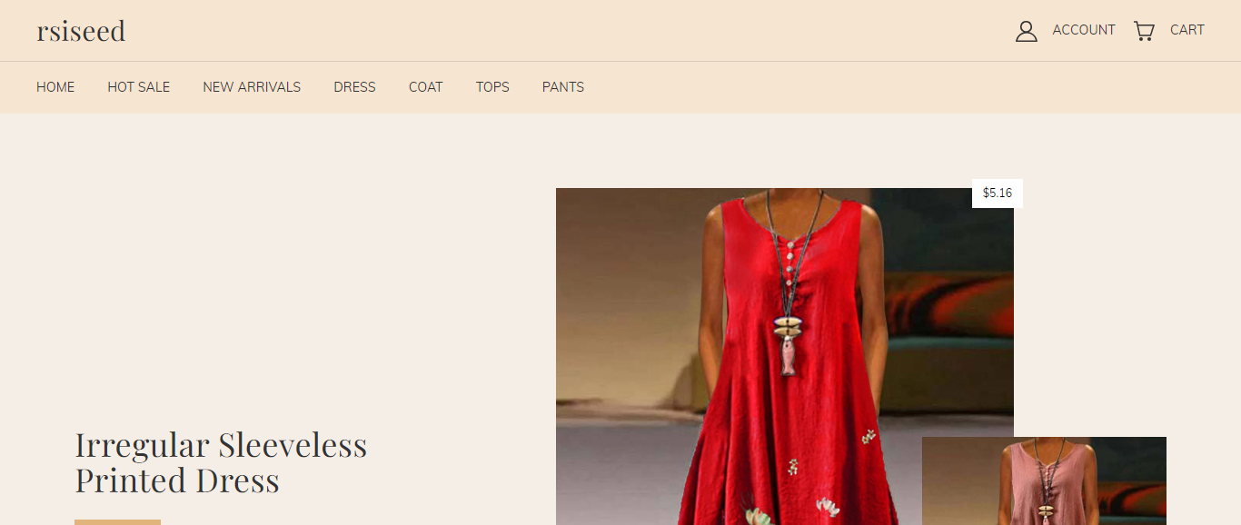 Rsiseed located at Rsiseed.com is an online store that is selling various products such as casual linen apparels, maxi dress, pants, dress shirt, formal dress, jumpsuit, etc. And these products are sold at a suspicious discount rate.