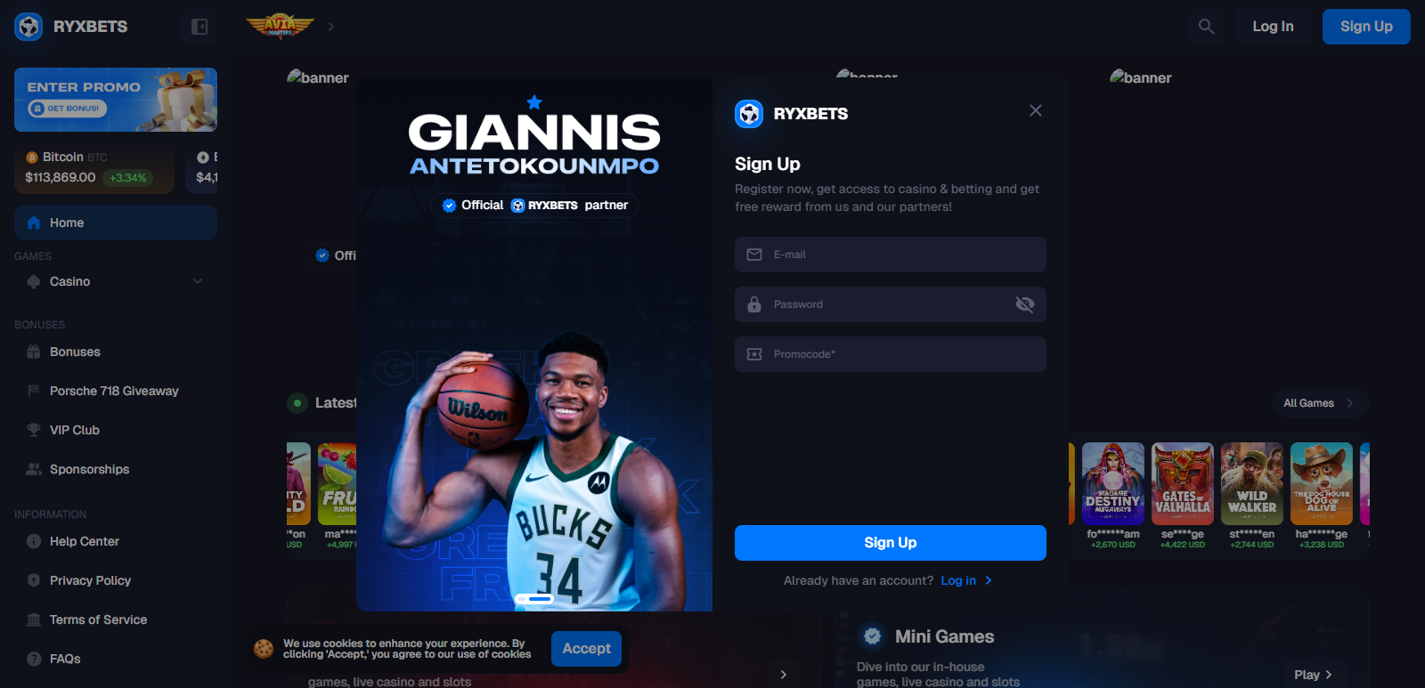 Ryxbets.com advertises itself as a betting and gambling platform with promises of bonuses, easy wins, and quick withdrawals. Like many similar platforms, it highlights attractive promotions designed to lure in new users. However, the website provides very little transparency about its operators, licensing, or physical location, which immediately raises questions about its legitimacy.