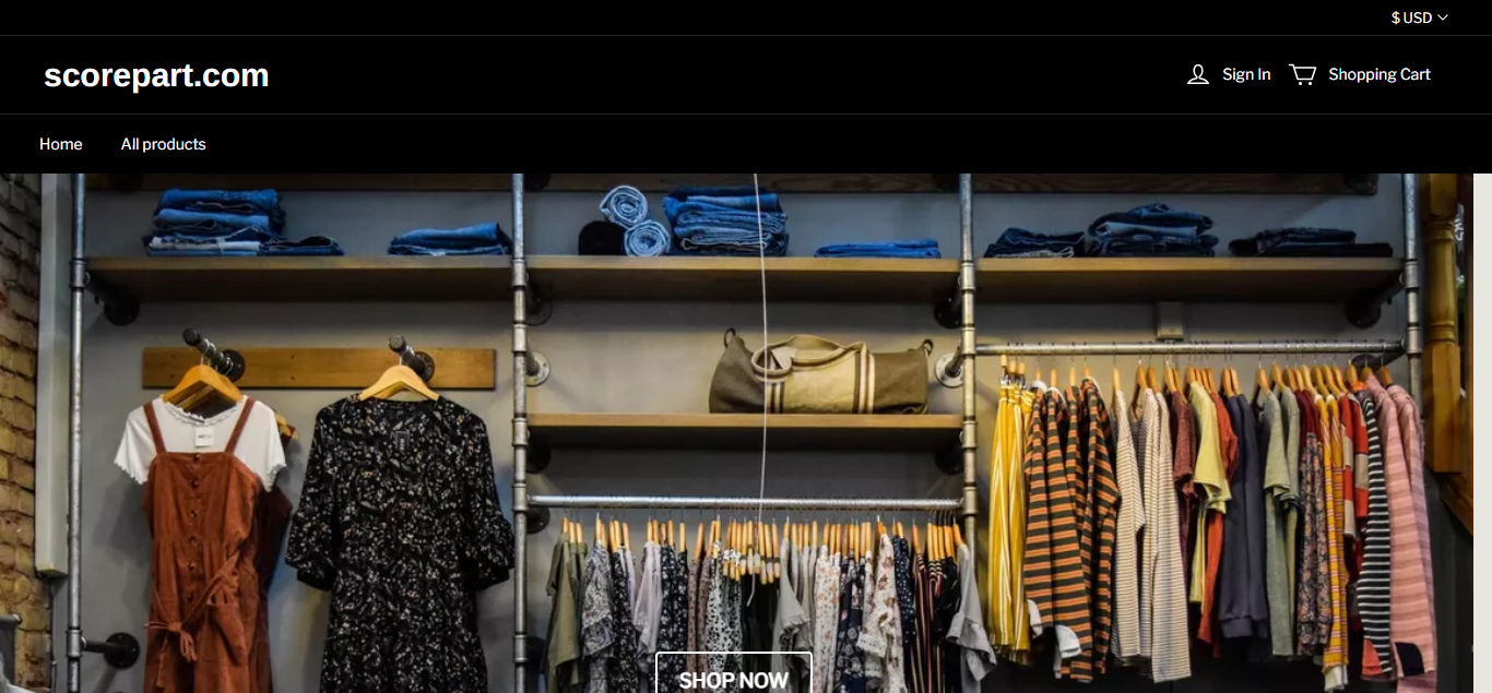 Scorepart located at Scorepart.com is an online store that claims to sell Amazon Pallets for only $34.97. It is also selling various types of clothings such as dresses, sandals, etc. And these products are sold at a suspicious discount rate.