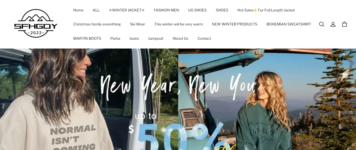 Sfhgdy located at Sfhgdy.com is an online store that is selling various fashion and clothing such as winter jackets, bohemian sweatshirts, parka, jeans, jumpsuit, etc. And these products are sold at a suspicious discount rate.
