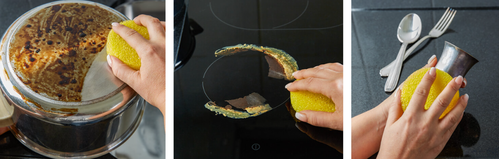 Yes, it works for all surfaces like in the Kitchen: Microwave, Ceramic hob, Pots and pans, Stove tops, Refrigerator, Copper, Brass, Stainless steel appliances, Countertops, toasters. Can be used in the Bathroom: Ceramic and porcelain sink, Fiberglass tubs, Faucets, Shower doors, Mirrors, Bathroom tiles.
