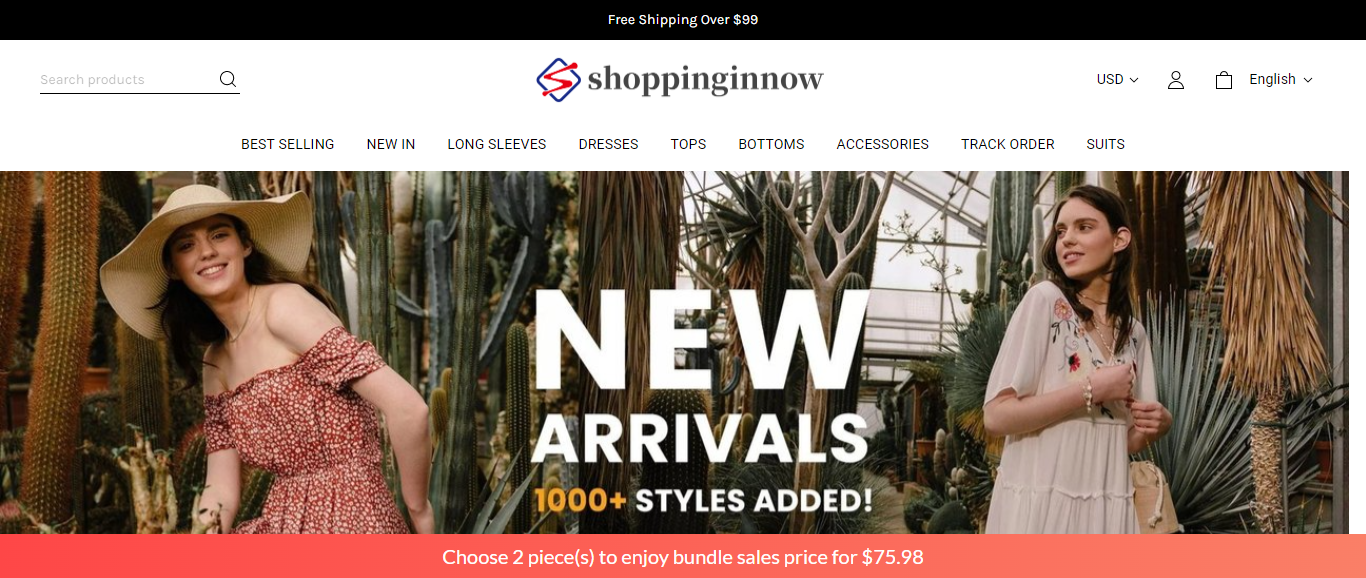 Shoppinginnow located at Shoppinginnow.com is an online store that is selling various types of fashion and clothing such as tops, dresses, accessories, suits, etc. And these products are sold at a suspicious discount rate.