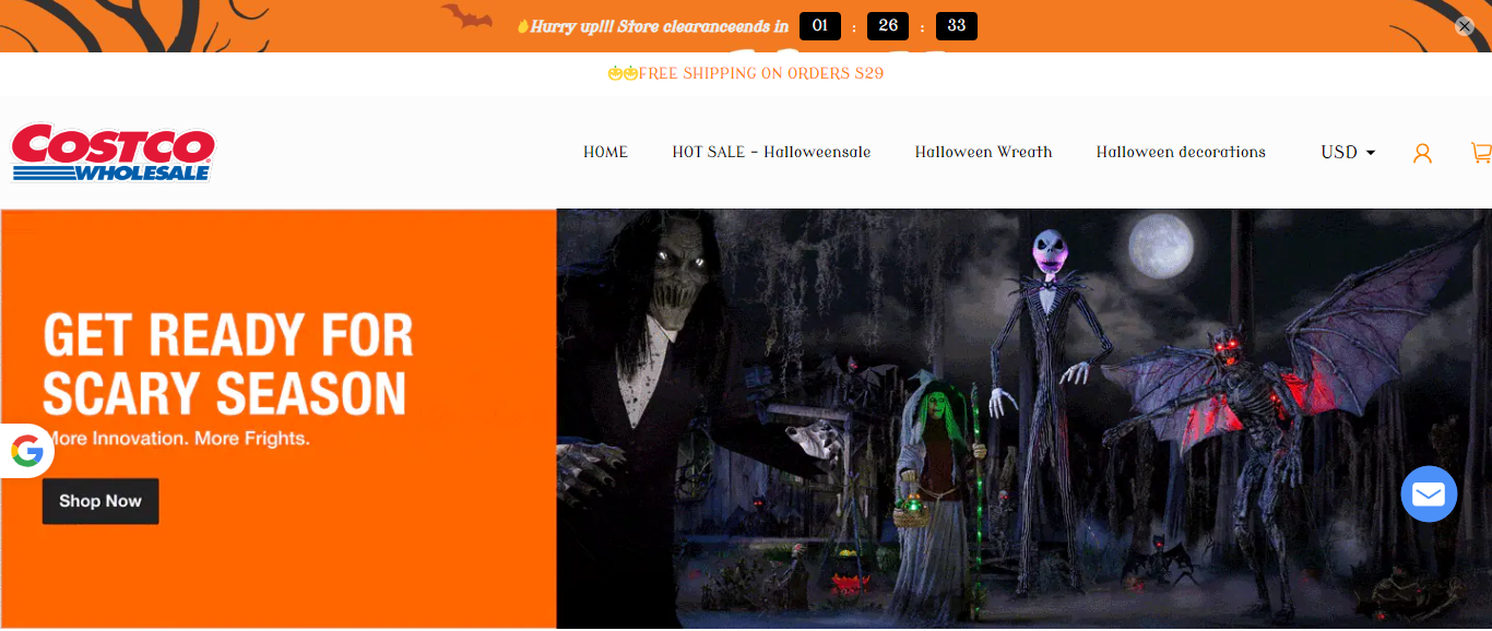 Shopumallout located at Shopumallout.com is an online store that is selling various products such as hallowen wreaths, halloween decorations, halloween costumes, etc.