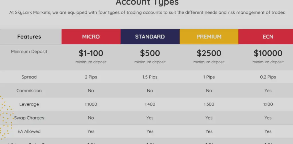 SkyLarks FX Markets offers different account packages such as —-