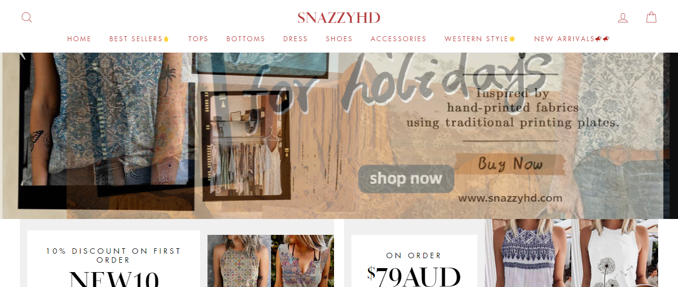 Snazzyhd located at Snazzyhd.com is an online store that is selling various products such as trousers, shoes, jumpsuit, dresses, etc. And these products are sold at a suspicious discount rate.