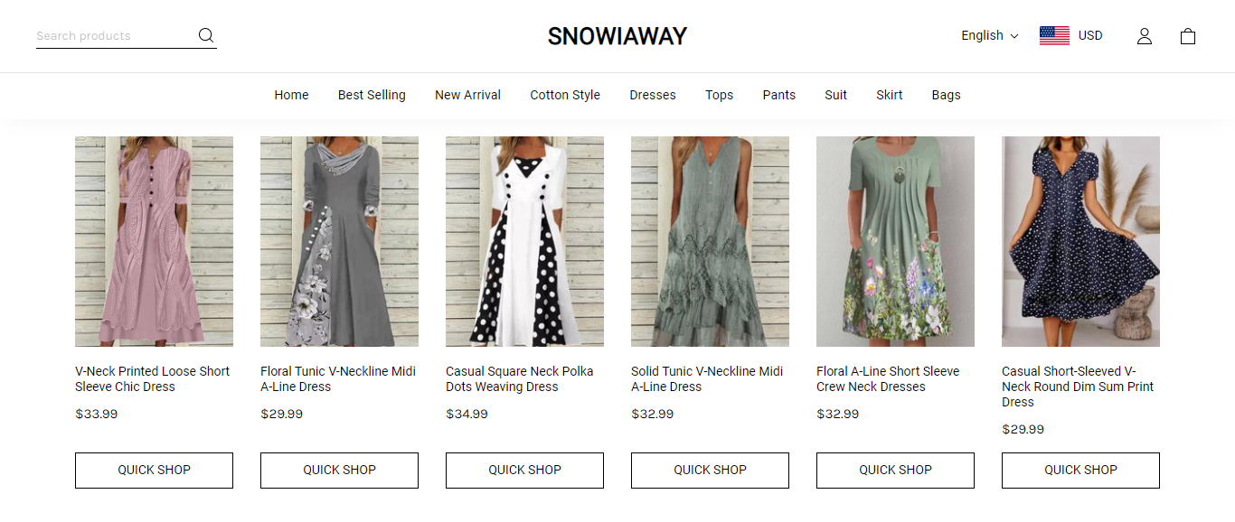 Snowiaway also known as Chicdows located at Snowiaway.com is an online store selling various fashion and clothing items such as dresses, pants, tops, suit, skirt, bags, etc. And these items are being sold at suspicious discount rates.