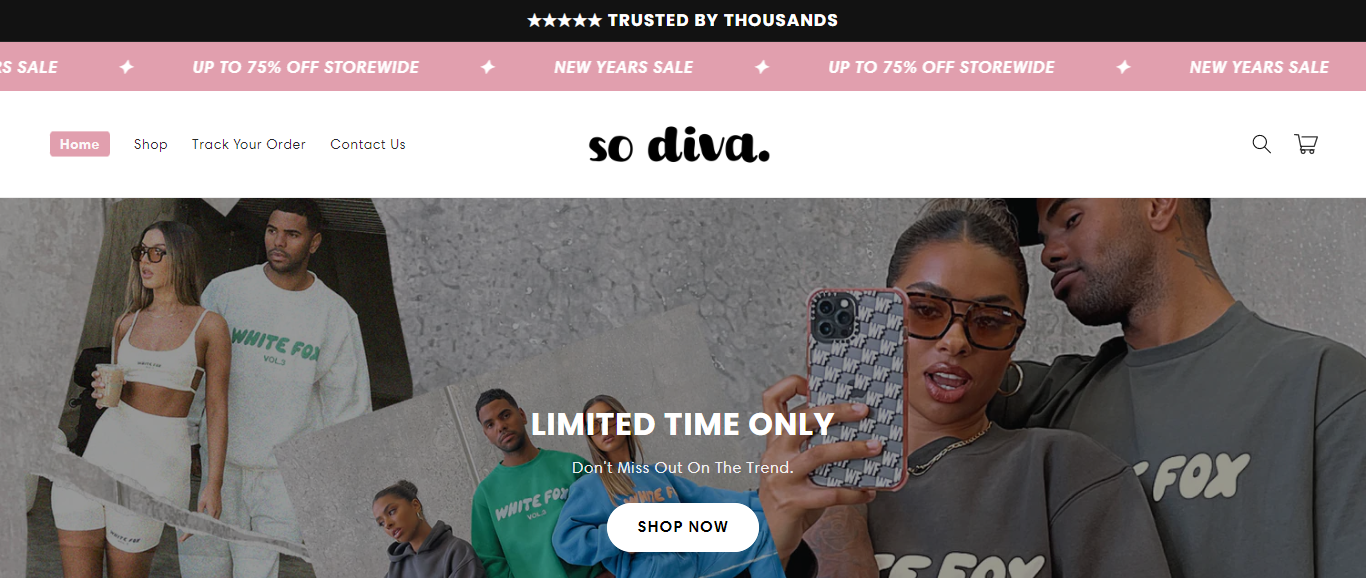 So-diva located at So-diva.com is an online store that is impersonating the selling various products such as tracksuits, Jacket, etc. However these items are being sold at ridiculous discount prices.
