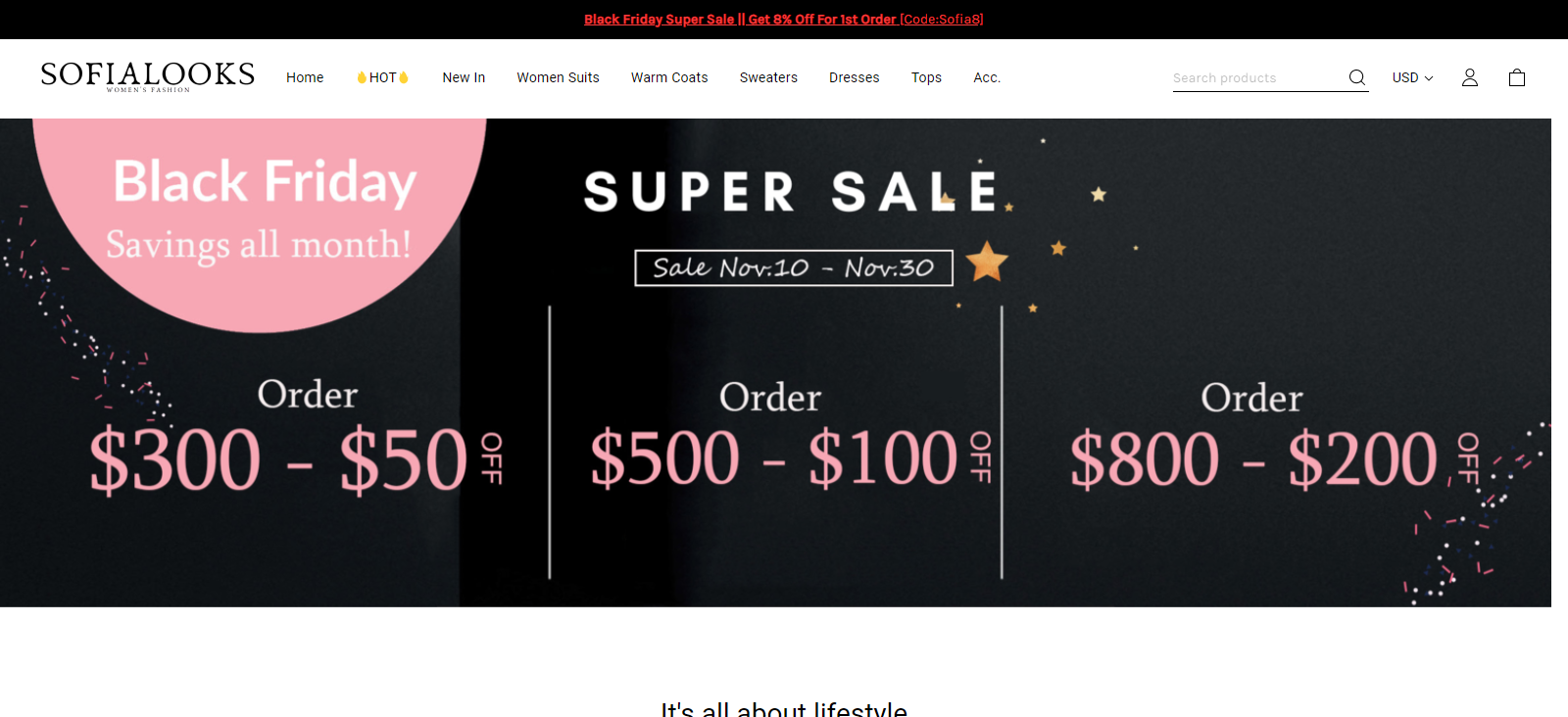 Sofialooks.com is an online store that sells variety of women’s wears like jackets, suits, jumpsuits, e.t.c This store claims the reason why items are sold for cheap prices is because they are offering black Friday sales. They also offer free shipping on all items
