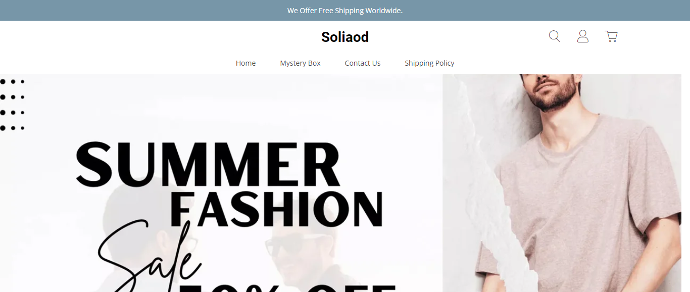 Soliaod located at Soliaod .shop is an online store that is selling various products such as Tshirts, dresses, mystery boxes, etc And these products are sold at a suspicious discount rate.