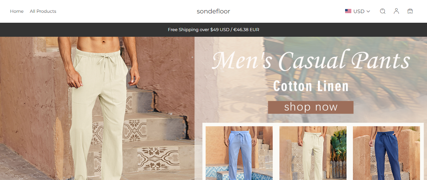 Sondefloor located at Sondefloor.com is an online store that is selling various products such as yoga pants, linen pants, etc. It is however running an Amazon Limited Time Sales Promo on Facebook, this is in fact a scam.