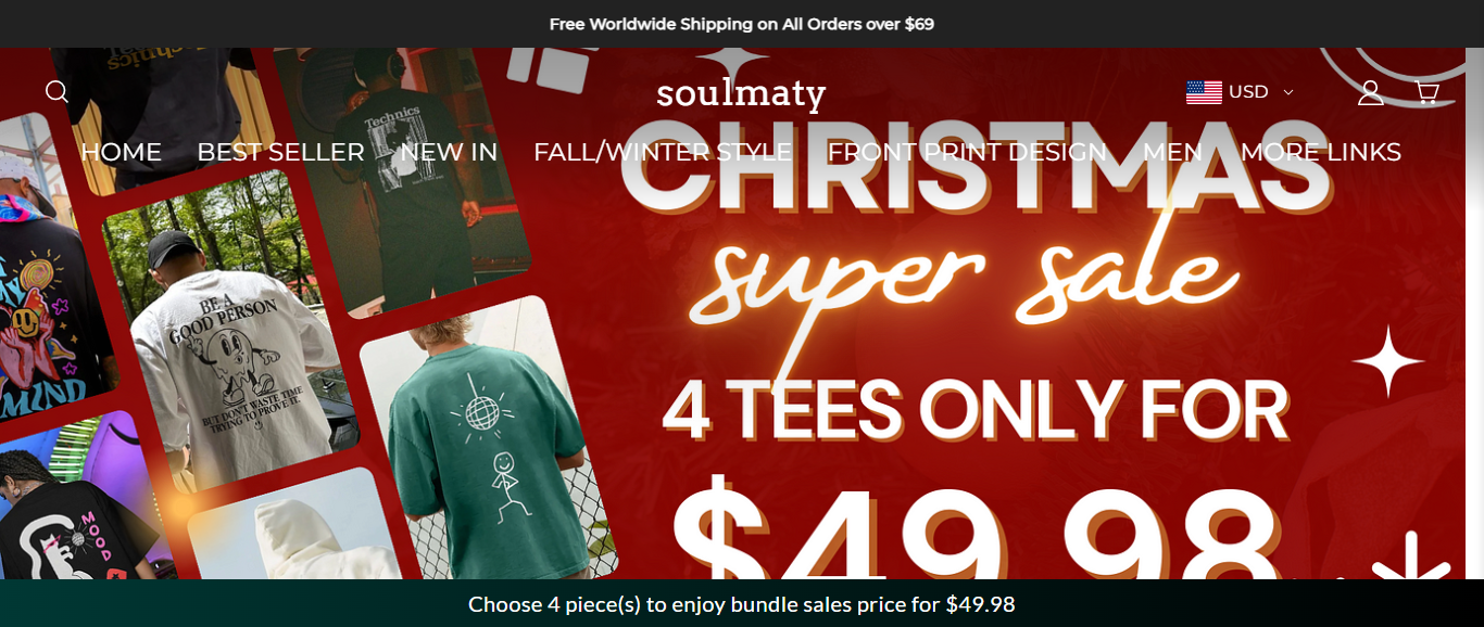 Soulmaty located at Soulmaty.com is an online store that is selling various products such as Tshirts, etc And these products are sold at a suspicious discount rate.