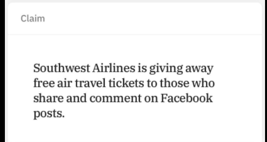 Southwest Air Fans Scam are scam posts claiming to be from Southwest Airlines saying you won a free flight.