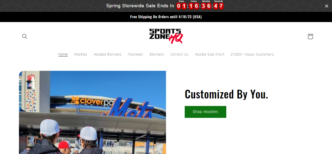 Sportszonehq located at Sportszonehq.com is an online store that is selling various products such as jeryseys, customized hoodies, etc. And these products are sold at a suspicious discount rate.