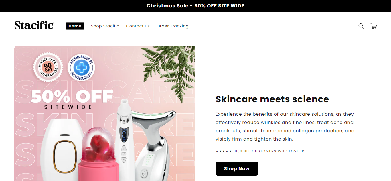 Stacific located at Stacific.com is an online store that is selling various products such as face sculptor handset, visual blackhead remover, ice roller for face and eye, etc. And these products are sold at a suspicious discount rate. The store is also running a sales on Facebook but this is a scam!