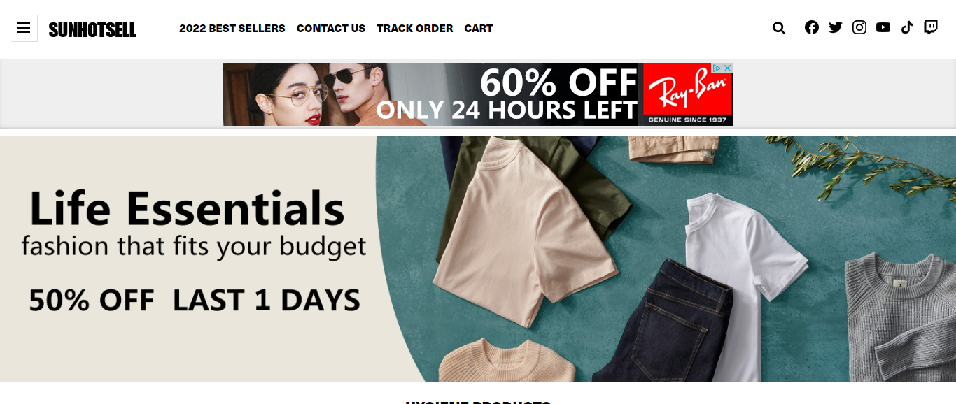 Sunhotsell located at Sunhotsell.com is an online store that is selling various types of clothing such as disposable face masks, ctton socks, women cotton tank, women camisole, men cotton t shirt, etc. And these items are being sold at suspicious discount rates.