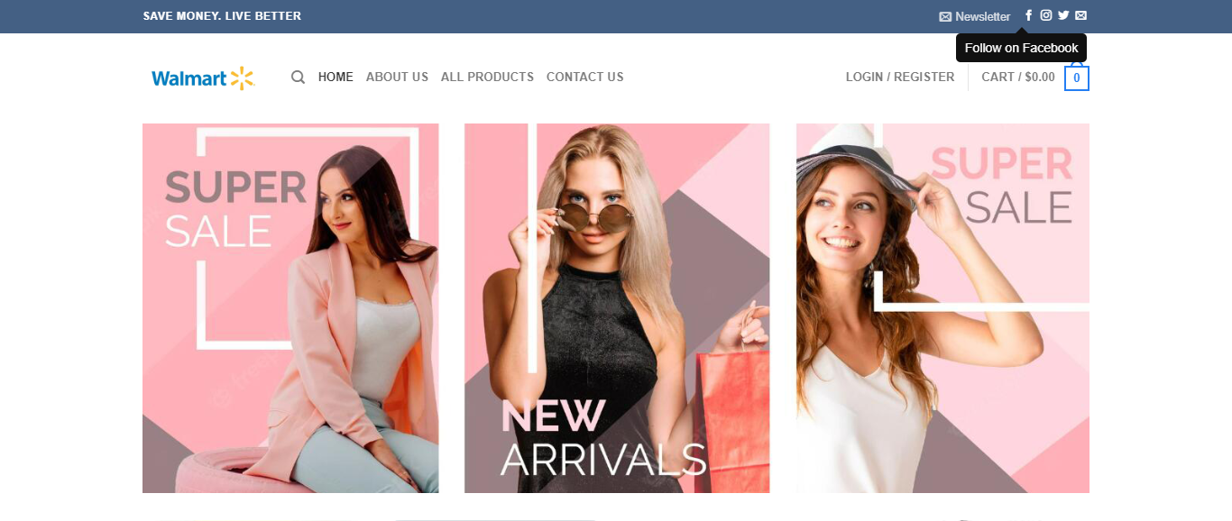 putting Walmart logo on the webpage and taking payment via PayPal for suspiciously low price products claiming free shipping in 10 to 20 days. Providing invoices with no company name or way to contact them