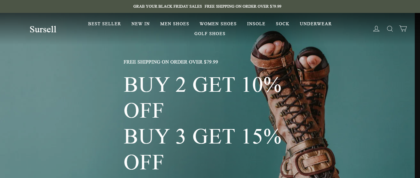 Sursell located at Sursell.com is an online store that is selling various products such as men shoes, women shoes, sandals, socks, underwear, etc And these products are sold at a suspicious discount rate.